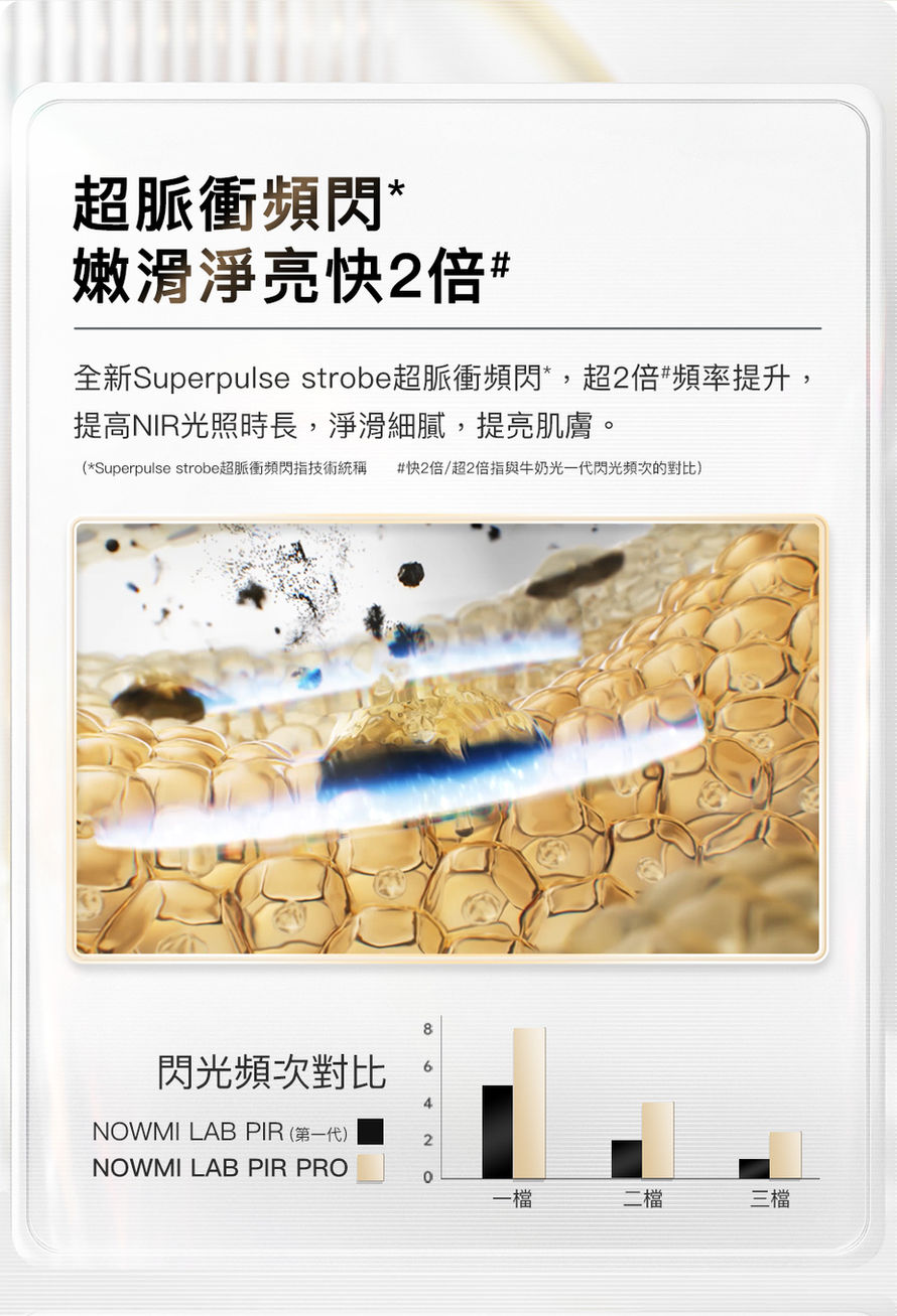 「超脈衝頻閃」技術使光的頻率提昇兩倍,提高NIR光照時長。